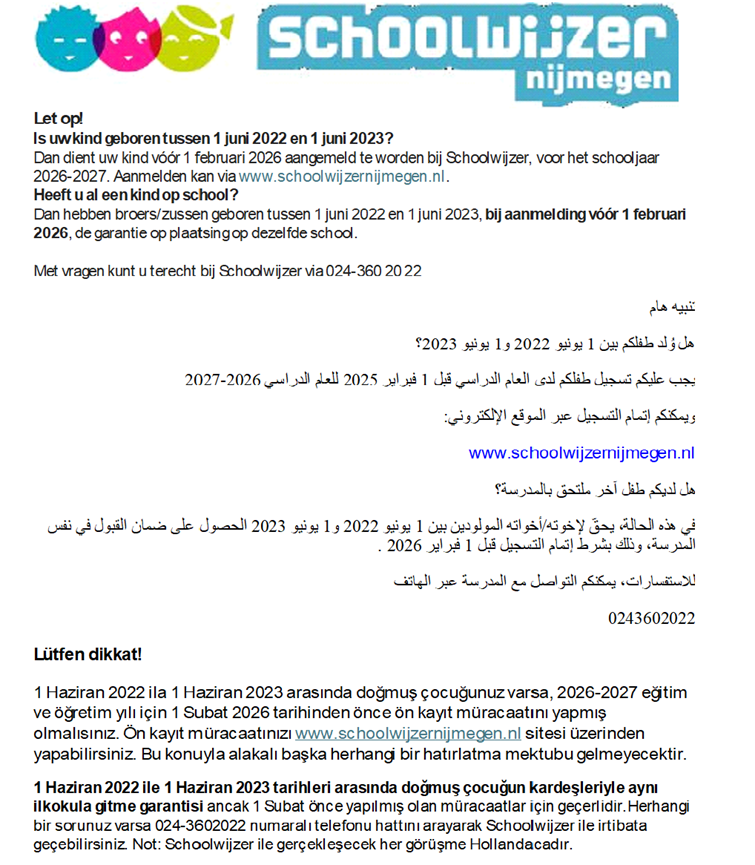 Ouders die een basisschool zoeken voor hun bijna vierjarige ontvangen wij graag op onze speciaal voor hen bedoelde open inloopochtenden.